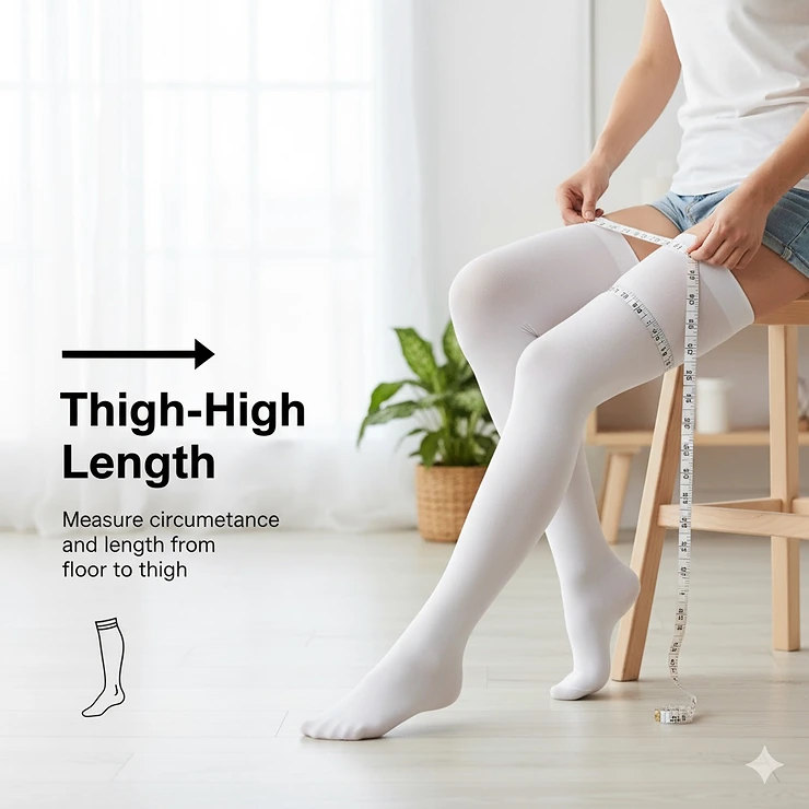 Thigh-high sizing is trickier because more variables are in play. Many people discover their legs don’t fit standard proportions – you might have average calves but full thighs, or vice versa.